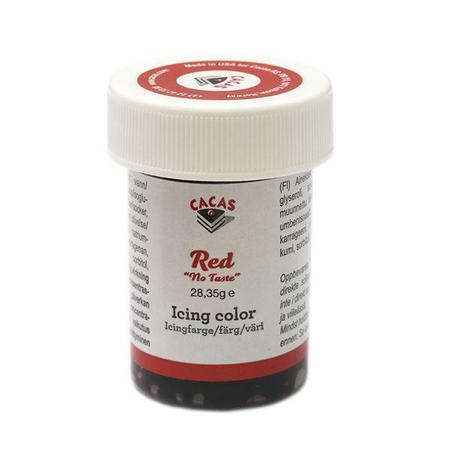 Cacas – Icing-/konditorfarge uten smak rød er en konditorfarge som brukes til å gi kaker, glasurer og andre bakverk en intens rød farge. Den er designet for å ikke påvirke smaken på det du lager, og egner seg for en rekke kulinariske prosjekter.