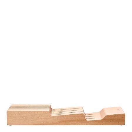 Designet er både moderne og praktisk, med plass til tre større og fire mindre kniver. Med et universaldesign som passer de fleste knivtyper, tilbyr denne knivblokken en løsning for de fleste kjøkken, uavhengig av hvilke redskaper som benyttes. Det er verdt å merke seg at knivene selges separat, noe som gjør det mulig å tilpasse oppbevaringssystemet etter egne preferanser.