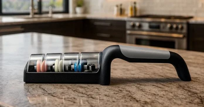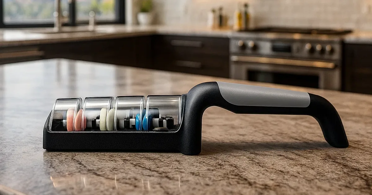 Apparatet er utstyrt med tre hjul med varierende kornstørrelse for ulike behov. Det grove hjulet med 120 kornstørrelse er ideelt for å forme en ny egg på sløve kniver, mens det medium fine hjulet med 240 kornstørrelse og det fineste hjulet med 600 kornstørrelse benyttes for å opprettholde og forbedre den eksisterende skarpheten.