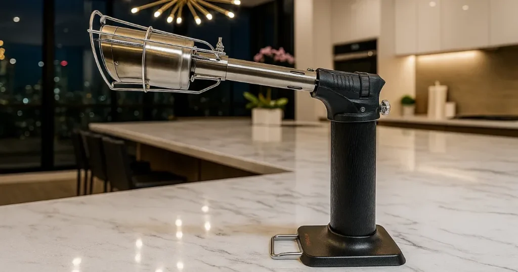 Brenneren er laget for å levere presis varmebehandling, enten det handler om å karamellisere sukker på en klassisk crème brûlée, gi sprø skorpe til kjøtt eller fremheve smaken i grillede grønnsaker. Flammen kan justeres enkelt, slik at man alltid har kontroll på intensiteten og kan tilpasse den etter råvarene. Den balanserte tyngden i stålet gjør at brenneren ligger stødig i hånden gjennom hele arbeidsprosessen.
