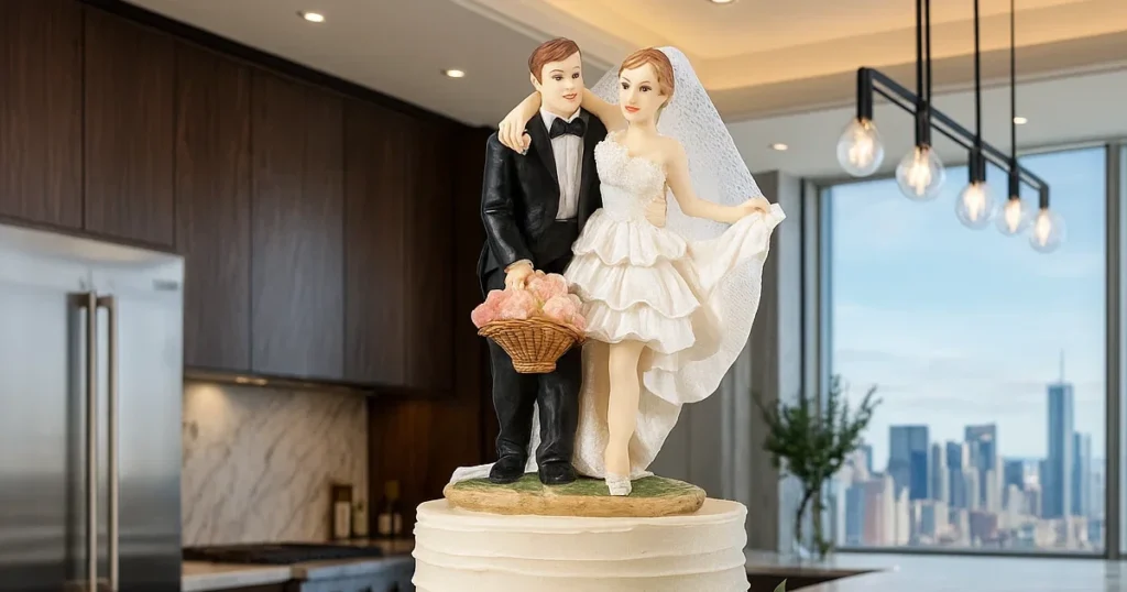 Bruken av nøytrale fargetoner gjør at figuren passer til ulike typer bryllupskaker og festtemaer. Detaljnivået gir et autentisk inntrykk uten å virke overdrevent. Dette er et produkt laget for å stå frem som en del av en personlig feiring, men også som et nøytralt objekt som kan bevares som et minne om en spesiell dag.