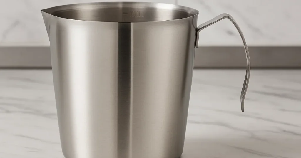 Det rene ståldesignet passer godt inn i ulike kjøkkenmiljøer, og begeret er enkelt å rengjøre etter bruk. For de som liker å lage kaffe eller kakao hjemme, kan det også benyttes til å skumme melk. Denne bruksfunksjonen gjør det mer fleksibelt i hverdagen, siden det ikke bare fungerer som et måleredskap, men også som et lite hjelpemiddel til varme drikker.